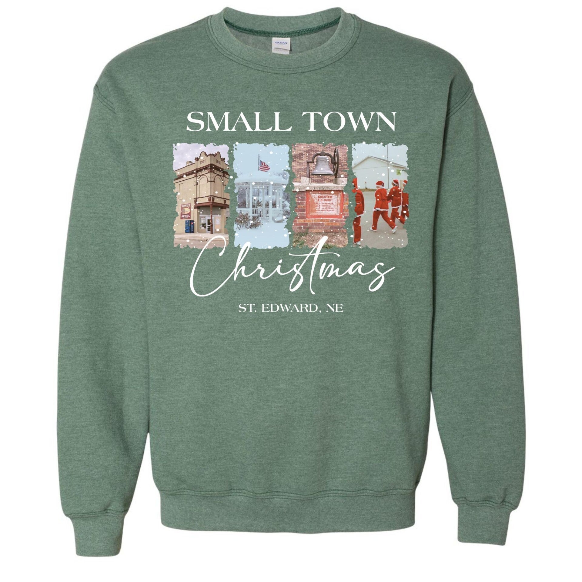 This sweatshirt features a collage of familiar St. Edward sights, paired with a festive script that captures the warmth and community spirit we all love during the holidays. Whether you live here, moved away, or just love small-town Nebraska, this design brings a little hometown pride to your holiday season.